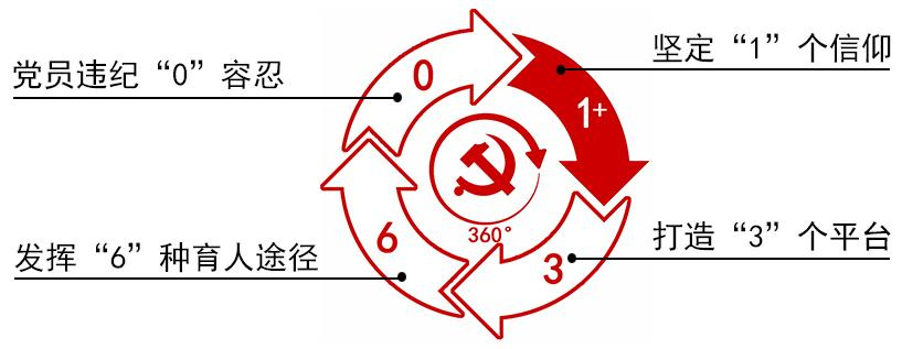 河北工业职业技术大学建筑工程系学生党支部于 2019 年获批教育部全国党建工作样板支部培育创建单位。建设过程中,党支部始终坚持以习近平新时代中国特色社会主义思想为指导,落实立德树人根本任务,坚持规范化、精细化,高标准、高质量,贴近师生实际、贴近党员实际、贴近工作实际,通过实施导航工程、强基工程、质量工程三大工程,形成了坚定“1”个信仰、打造“3”个平台、发挥“6”种育人途径、党员违纪“0”容忍的“1+360”党建工作新模式,为培养高素质技术技能人才提供了坚强的组织保证(图 1)。
